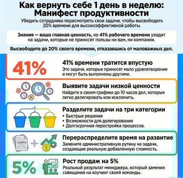 Узнайте, как топ-менеджеры и предприниматели могут делегировать 41% малозначимых задач. Психология продуктивности и лидерские стратегии от Самата Панова. Тайм менеджмент - как освободить 20% времени
