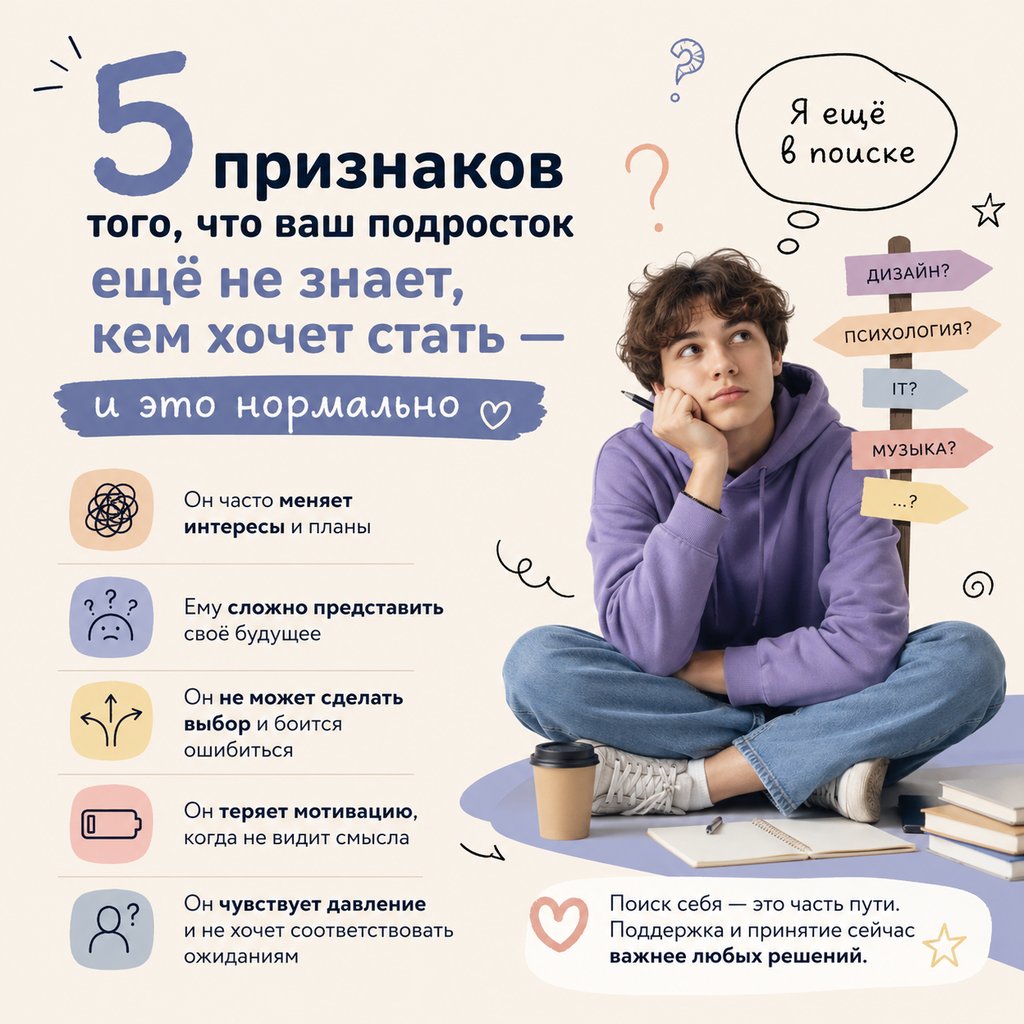 Что делать, если ребенок в 16 лет не знает, кем стать? Разбираем 5 признаков неопределенности и научно обоснованные пути решения от эксперта по профориентации. Профориентация.
